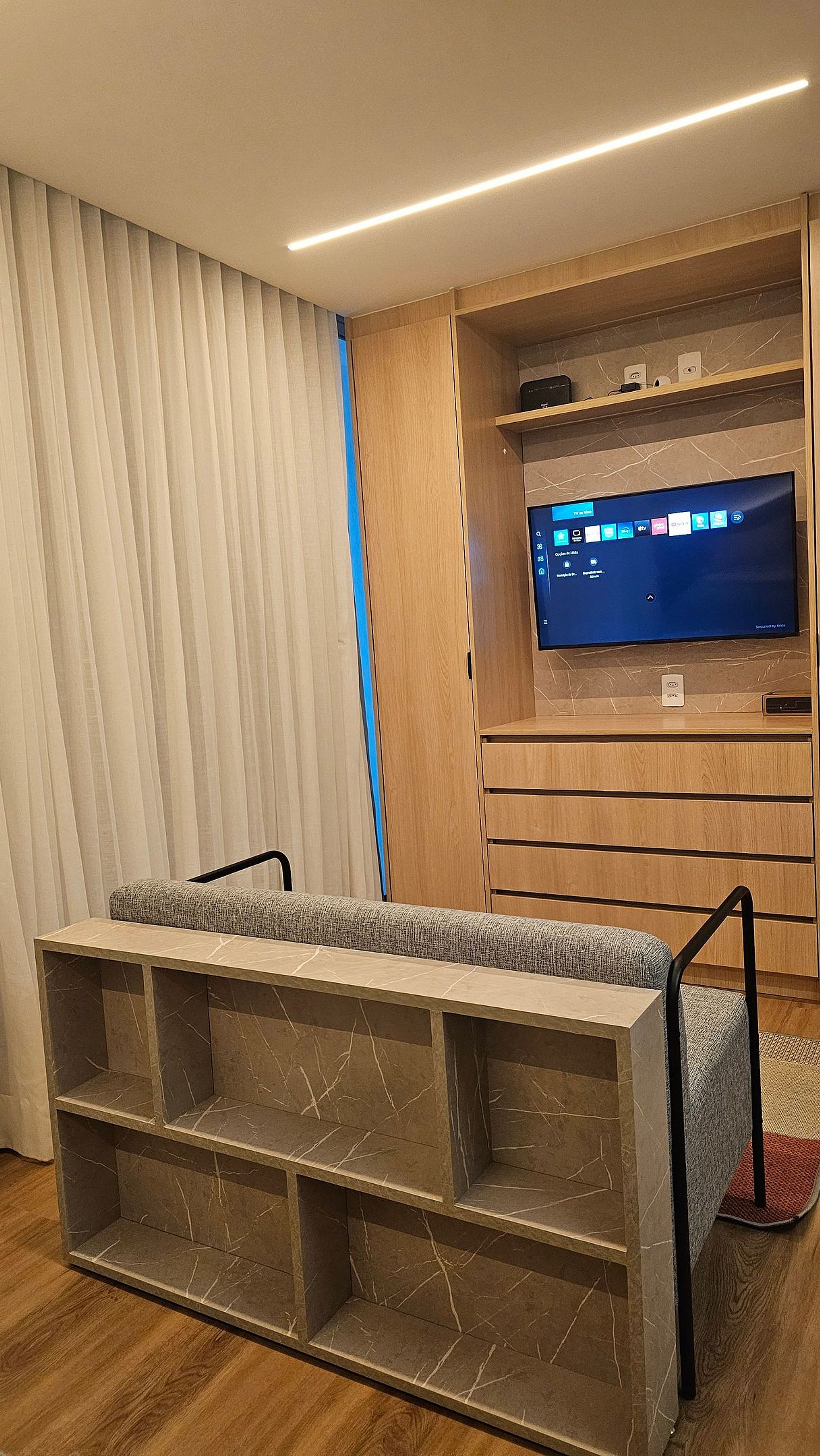 Nosso estúdio foi projetado para oferecer sofisticação e conforto em cada detalhe. A decoração contemporânea, o acabamento de alto padrão e a iluminação cuidadosamente planejada criam uma atmosfera elegante e acolhedora, perfeita para relaxar ou trabalhar com estilo.