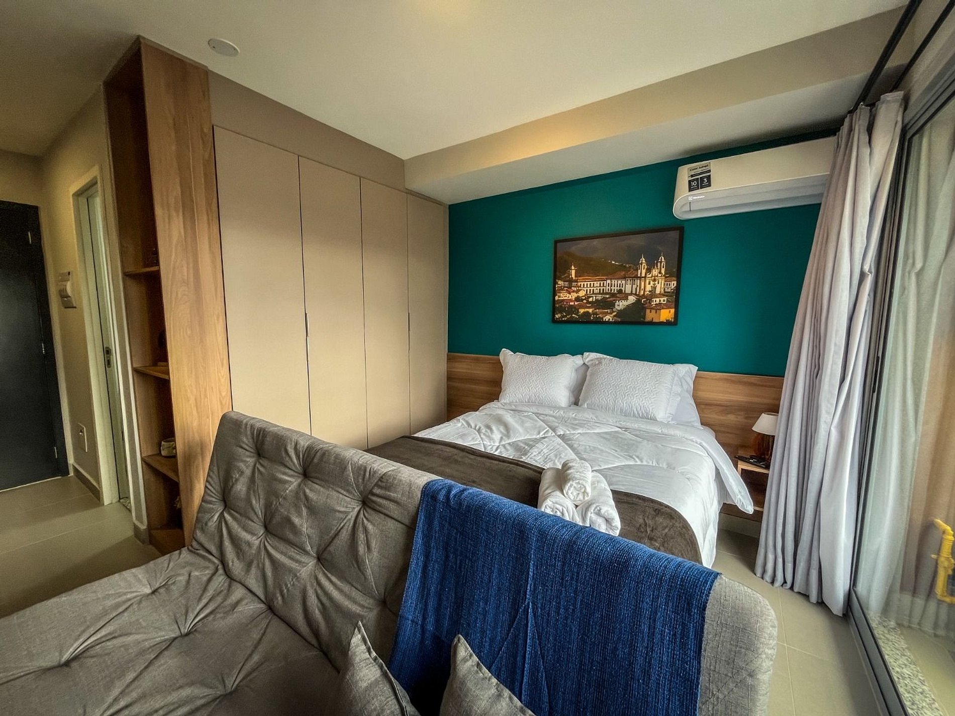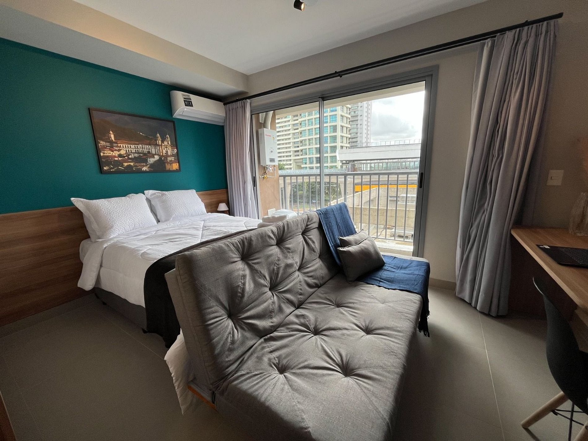 “Studio moderno e aconchegante no coração do Brooklin, 100% mobiliado e pronto para sua estadia. A poucos minutos da Berrini, metrô Campo Belo e Aeroporto de Congonhas, com fácil acesso aos principais bairros de SP. Condomínio completo: piscina, academia, coworking, rooftop com vista incrível, lavanderia OMO e espaço pet. Perfeito para viagens a trabalho ou lazer. Venha se sentir em casa!”.