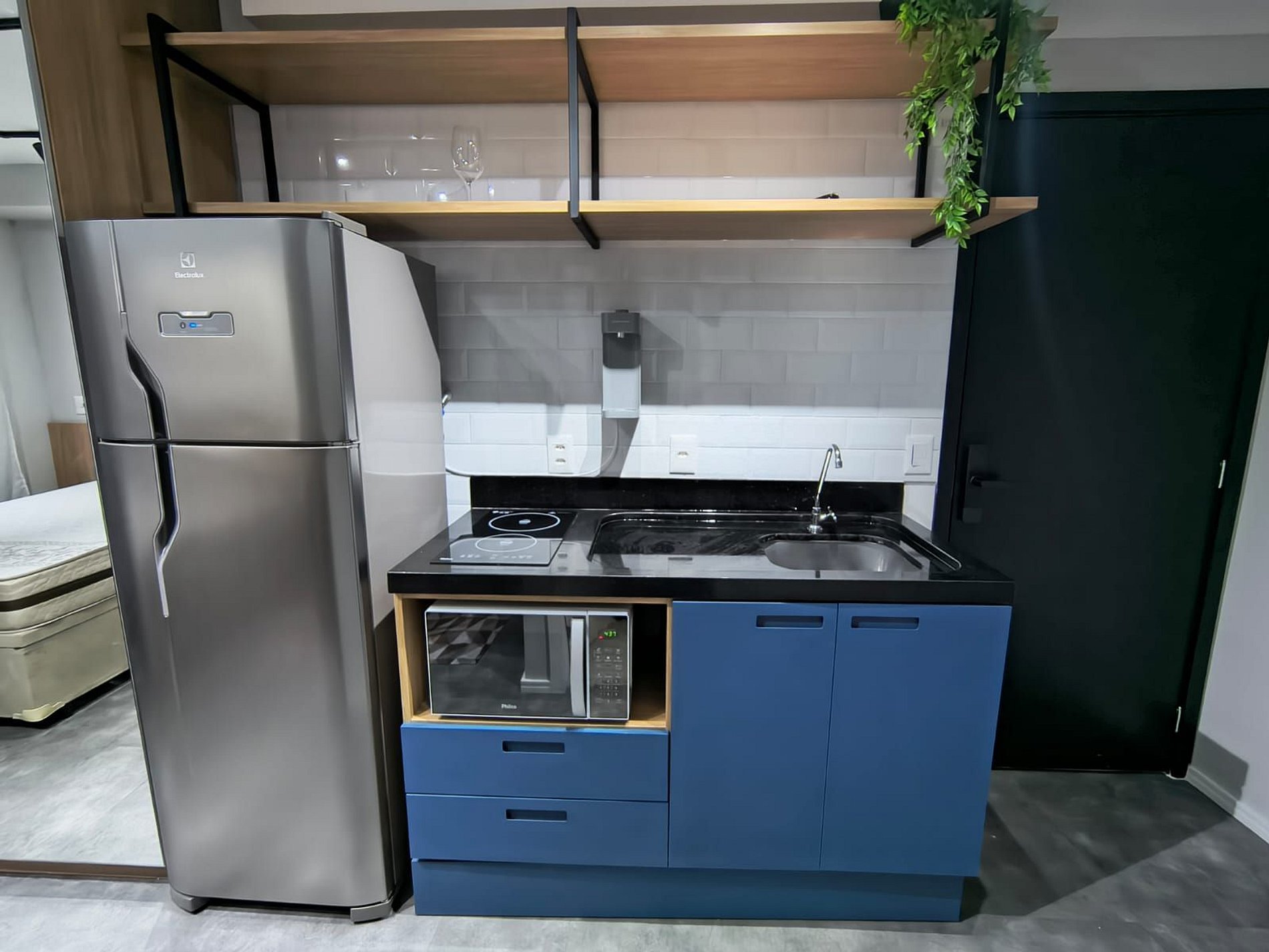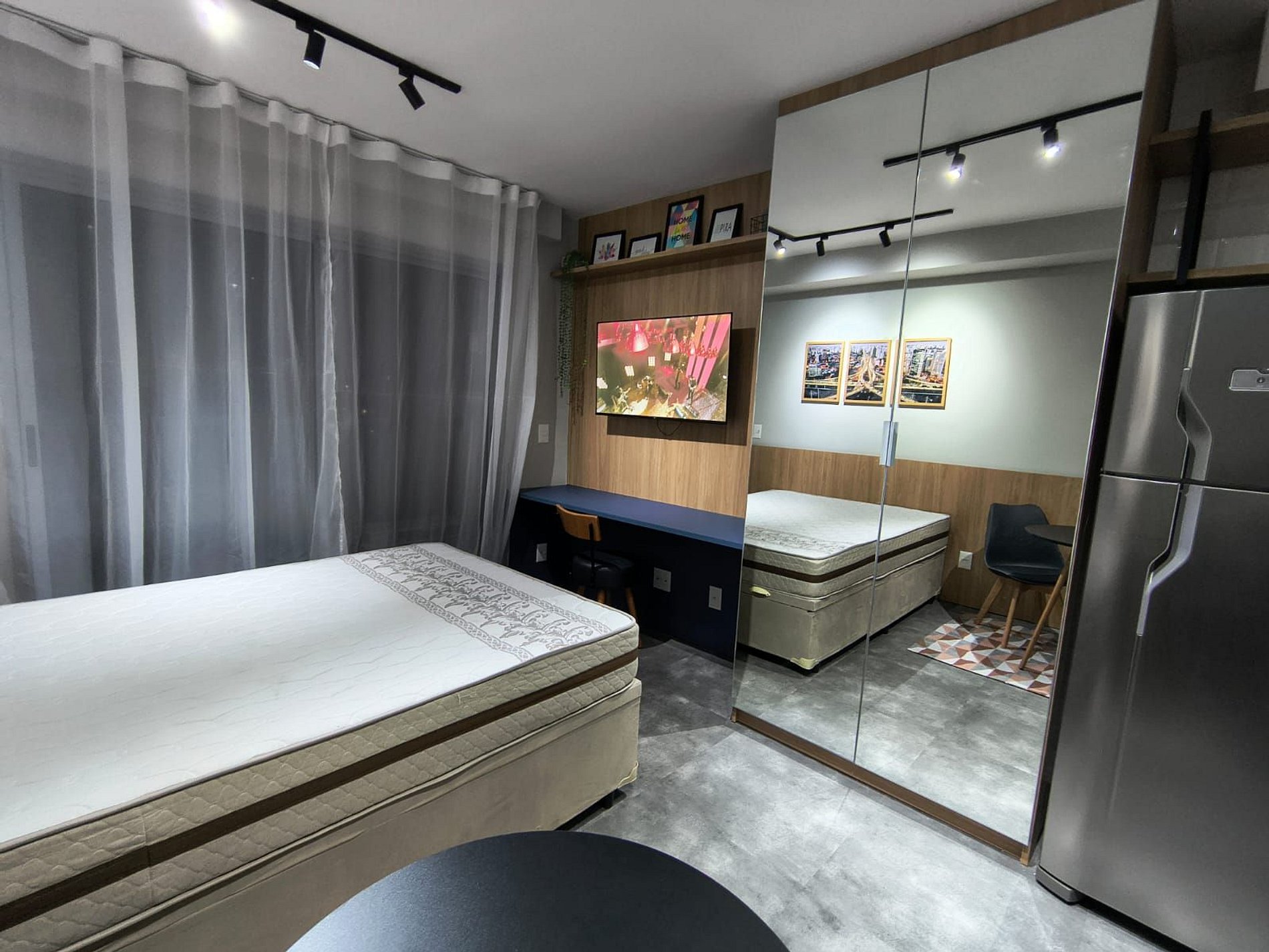 O studio é totalmente mobiliado e equipado, pronto para uso.
